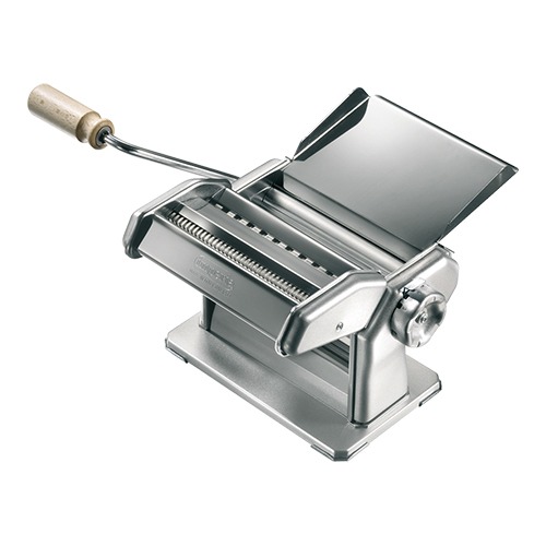 verchroomd gepolijst staal, professionele uitvoering, extra breed uitrol vlak van 22cm, met instelknop voor het uitwalsen van het deeg in verschillende dikten